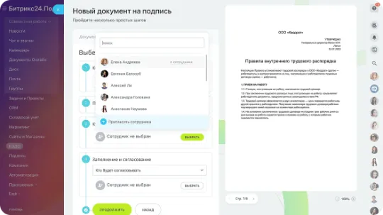 Sistem imzalar barədə bildirişlər göndərir, gecikmələr haqqında xatırladır və sənədləri 1C ilə sinxronlaşdırır.